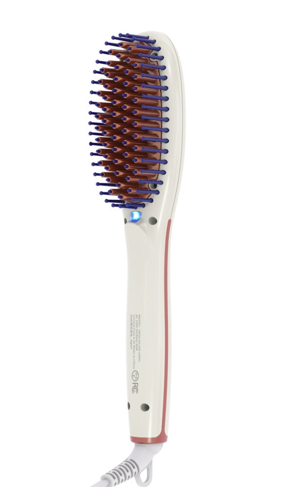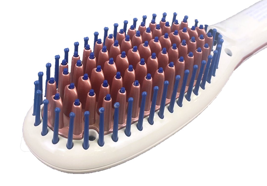 加熱ピンの先端はシリコンで頭皮にも負担をかけないアレティのブラシアイロン。