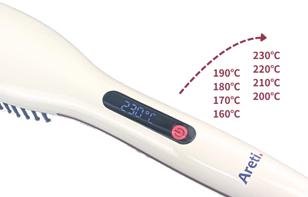 アレティのブラシアイロンはデジタル表示でわかりやすく、適温で使用できるから熱ダメージを軽減できます。