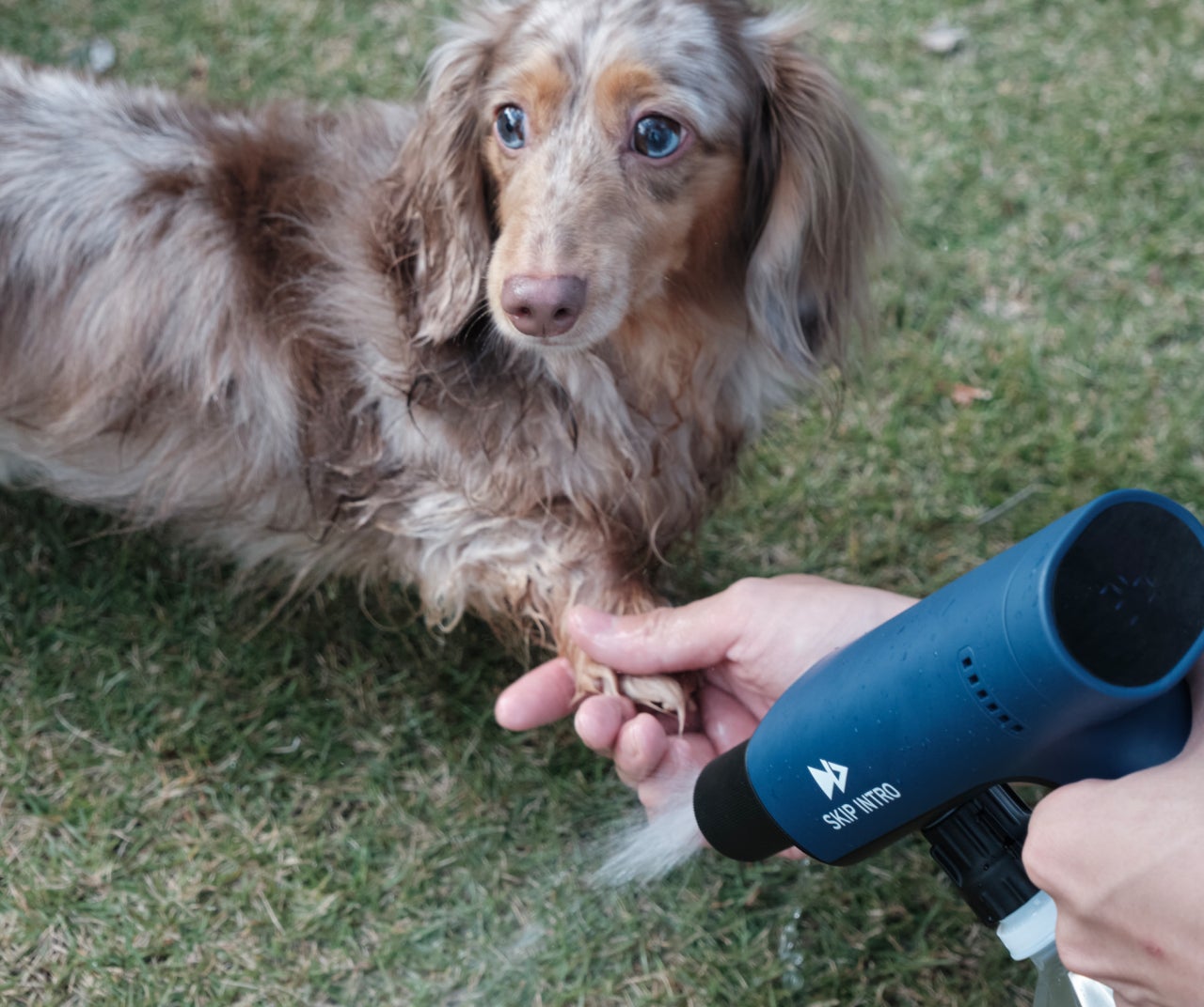低圧モードやシャワーモードでは、人やペットの体に直接使うことを想定したやさしい水流で、アクティビティ後や散歩のあとの汚れを“洗う”のではなく、“その場でリセット”することができます。