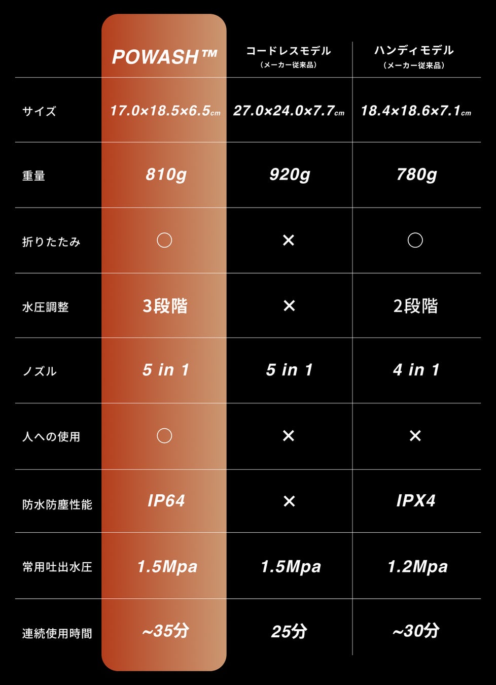 POWASH™︎のスペック