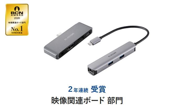 エレコム株式会社(本社:大阪市中央区、取締役社長執行役員:石見 浩一)は、株式会社BCN主催の「BCN AWARD 2026」において、『キーボード』、『マウス』、『モバイルバッテリ・充電器』、『スマートフォンケース』、『スマートフォン保護シート』、『タブレット端末アクセサリ』、『サウンド関連ボード』、『携帯オーディオアクセサリ』、『10キーボード』、『映像関連ボード』の全10部門で最優秀ベンダーを受賞しました。
