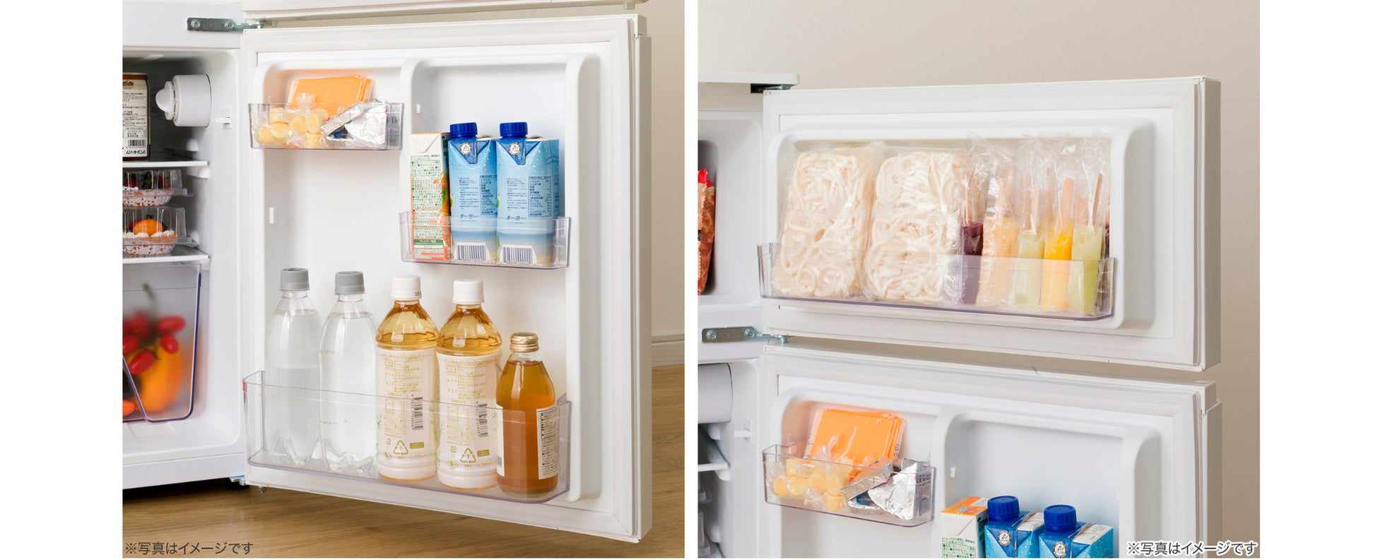 1人暮らし用の冷蔵庫選びで悩ましい、ドアの開く方向。せっかく購入しても、ドアの開く向きによっては使いにくくなってしまいます。新商品は右開きと左開きの両モデルをご用意。