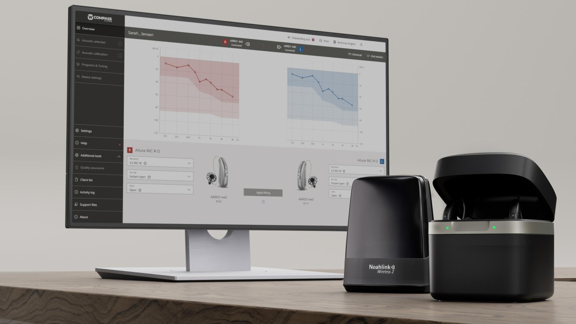 補聴器本体のテクノロジーは日を追うごとに進化し続けています。ワイデックスは、補聴器の能力を最大限に引き出すうえで欠かせない要素のひとつである「調整」に着目。ALLUREでクラウド型調整ソフト「WIDEX COMPASS CLOUD[ワイデックス コンパス クラウド]」を開発しました。