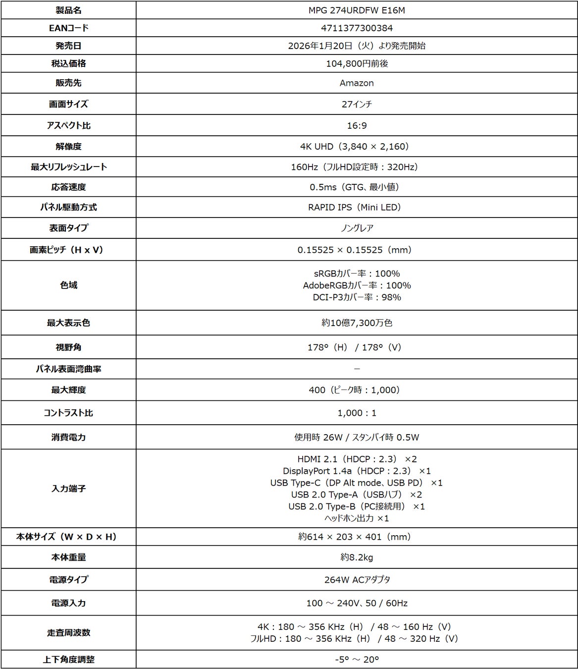 ■MPG 274URDFW E16M製品ページ