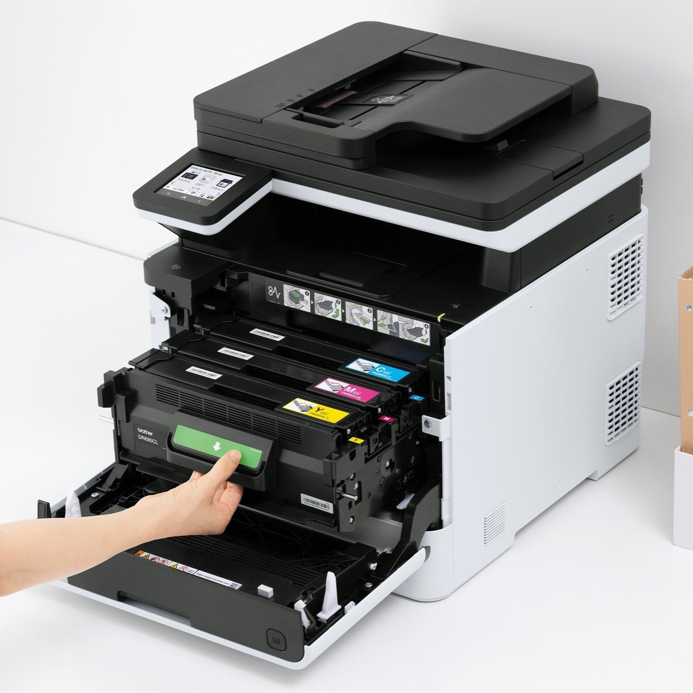 ・・・従来機種【※4】と比べて本体サイズを約28%削減し(対象機種:MFC-L8730CDW)、カラー複合機でありながらコンパクトな本体サイズを実現した。また全機種においてトナー交換や給紙・排紙を前面で行えるフロントオペレーションを採用し、省スペースで快適に利用できる。