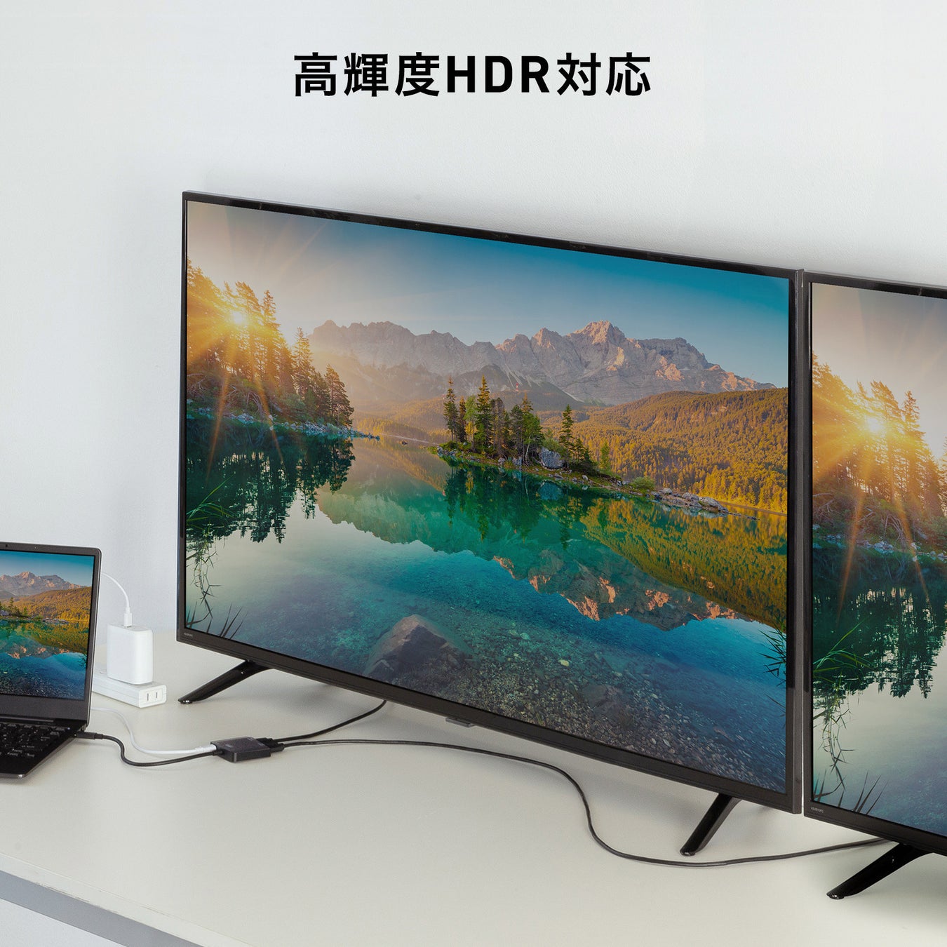 USB Type-C搭載(映像出力に対応したType-Cポートのみ)のパソコンから2台のHDMIディスプレイやテレビなどに映像・音声を出力することができる変換アダプタです。