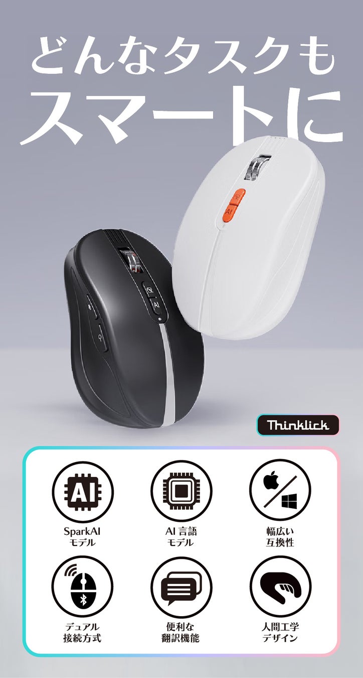 ThinKlick(シンクリック)は高性能AI「Spark」の機能をフル活用する、画期的な次世代ワイヤレスマウスです。