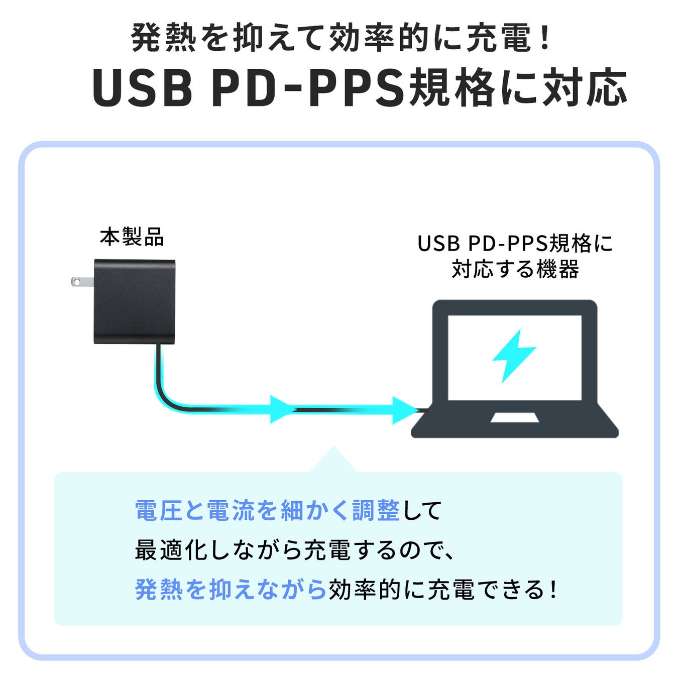 発熱を抑えながら、より効率的でスピーディーな充電が可能です。