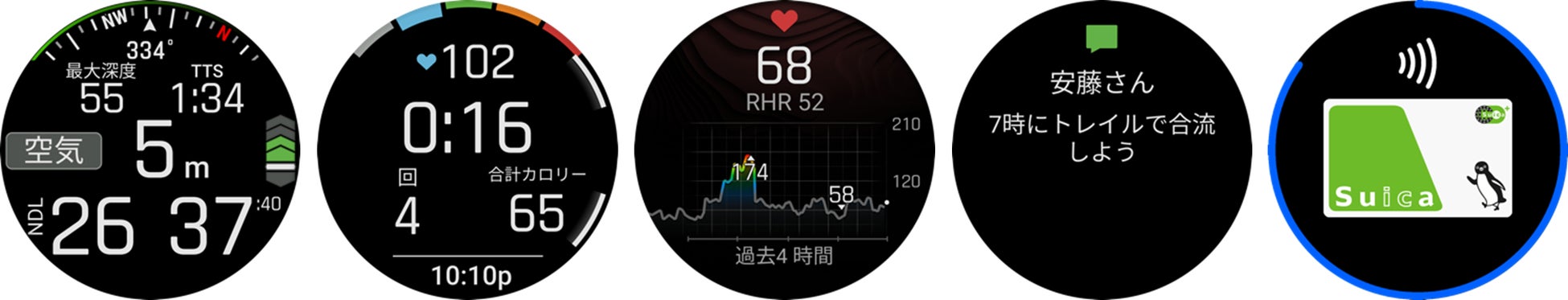 ディスプレイは、AMOLED(有機EL)カラーディスプレイを採用。美しい発色だけでなく、太陽光の下でも見やすいので、砂漠から雪山、そして水中まで様々なシーンで高い視認性を発揮します。