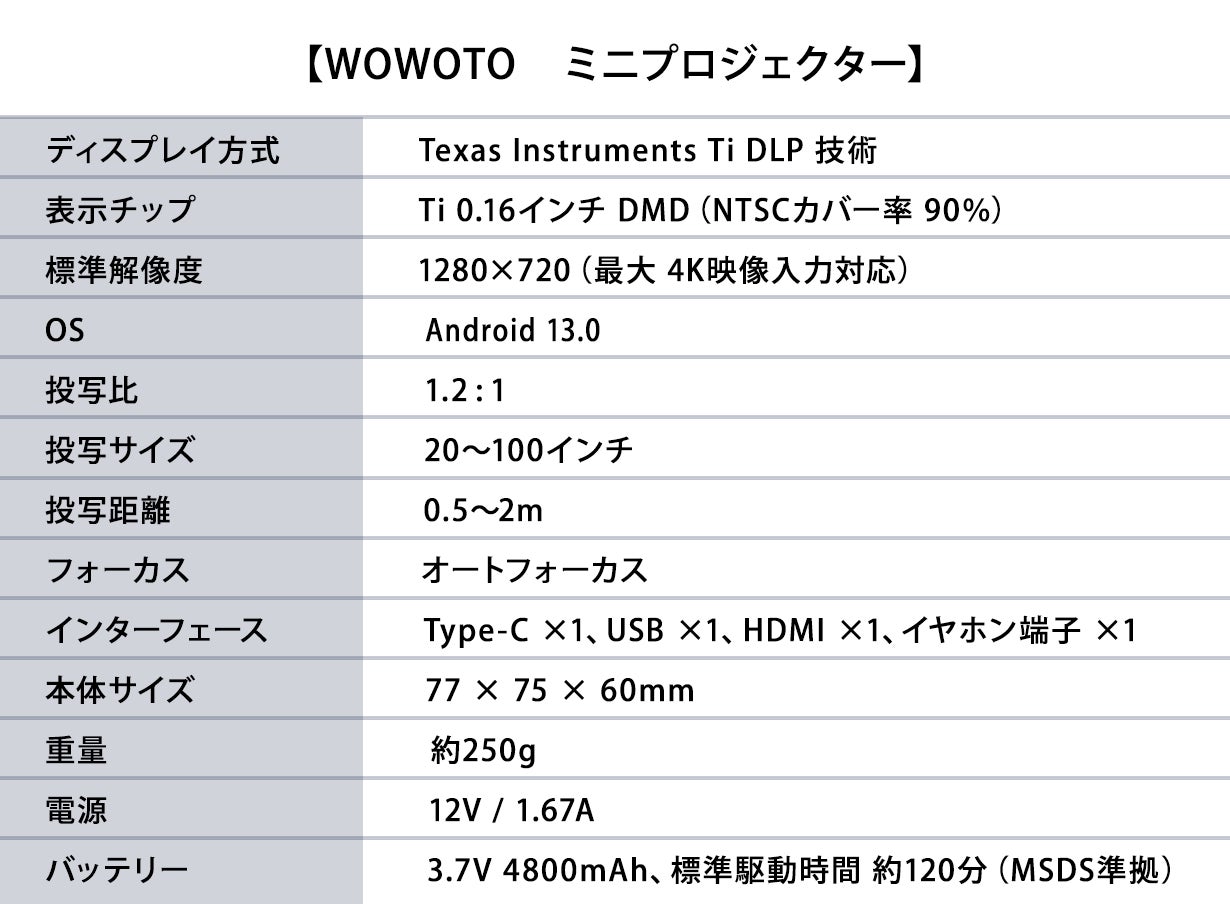 そんな願いを叶えるのが、ポケットサイズ・超軽量250gのミニプロジェクター「wowoto Q8」です。