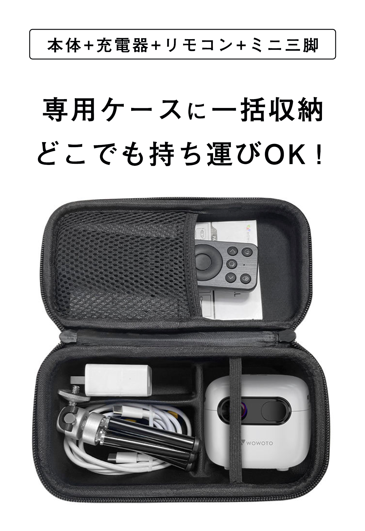 三脚や電源コードも一緒に収納できる便利な専用ケースが付属しており、ケースに全部入れて持ち運びもラクラク!