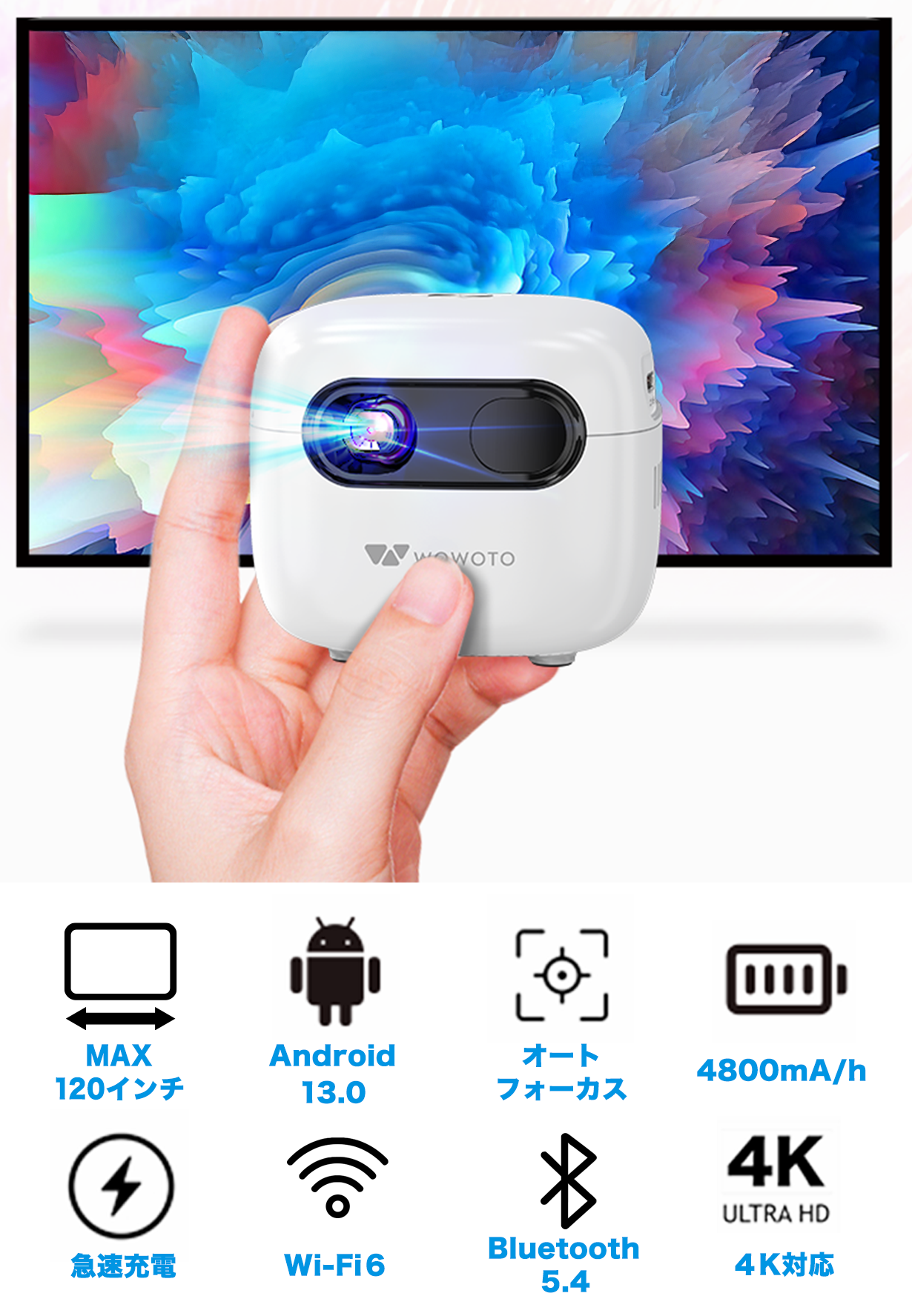 Android 13搭載&32GBストレージでスマホ不要。オートフォーカス&自動台形補正で面倒な設定いらずのホームシアター体験を、リビングから旅先まで。
