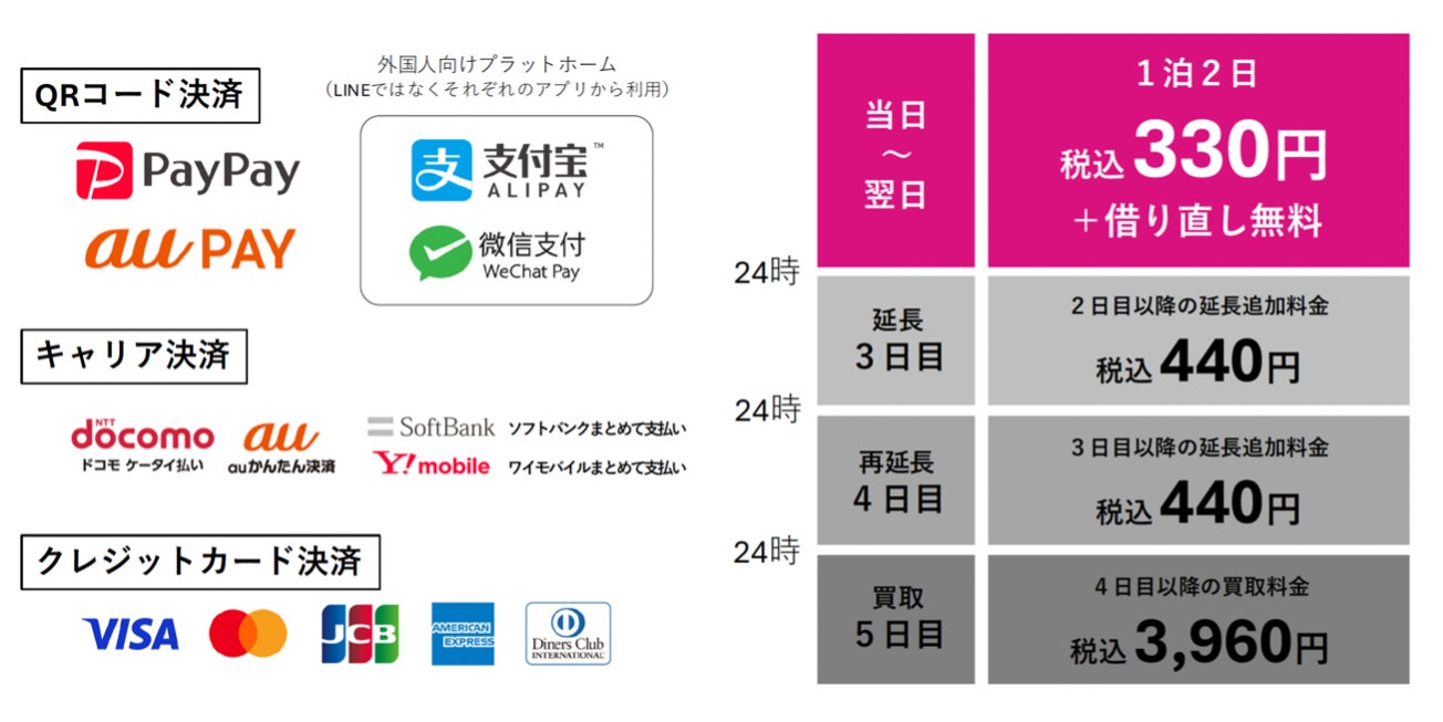 鉄道や商業施設などの公共エリアを中心として各地にモバイルバッテリーのレンタルスタンドを設置しています。各種電子決済によりモバイルバッテリー1台を330円(税込)で、レンタル当日から翌日24時まで利用可能で、返却時は「充レン」のレンタルスタンドであれば全国どこでも返却可能。3種類のケーブルが付属しており、レンタル後すぐにご利用いただけます。新規設置、ご利用方法等に関するお問い合わせは公式Webサイト(https://ju-ren.jp/ )をご覧ください。
