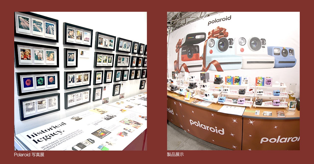 写真展を鑑賞した来場者は、そのままPolaroidカメラによる写真撮影体験に参加でき、クリスマスツリーやサンタクロースと一緒に撮影した写真を、その場で持ち帰ることができました。あわせて、最新のPolaroidカメラおよびフィルムの展示・販売も実施。
