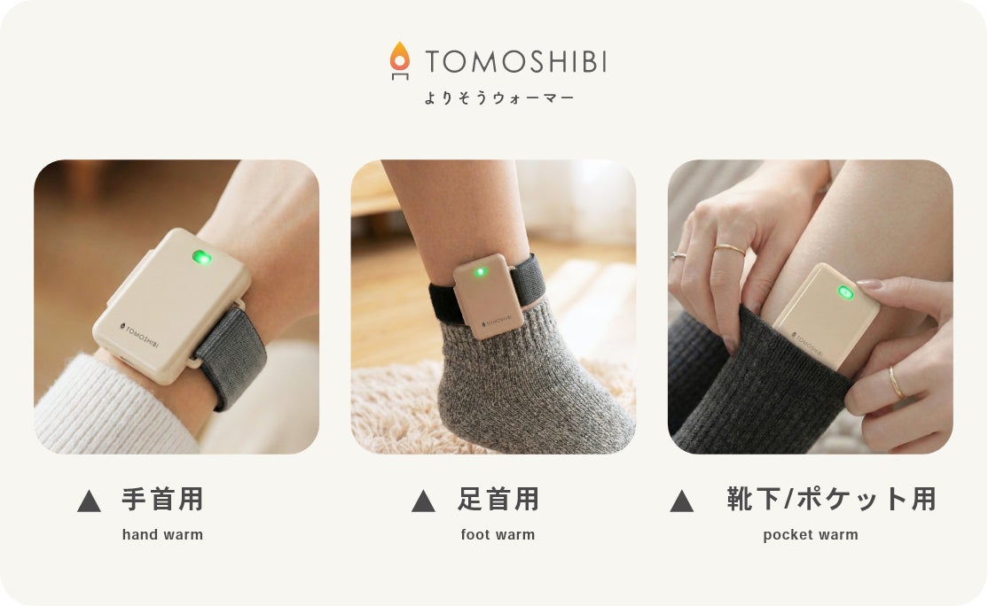 「TOMOSHIBI」はそんな日常のふとした思いから開発した「ウェアラブル電子カイロ」です。