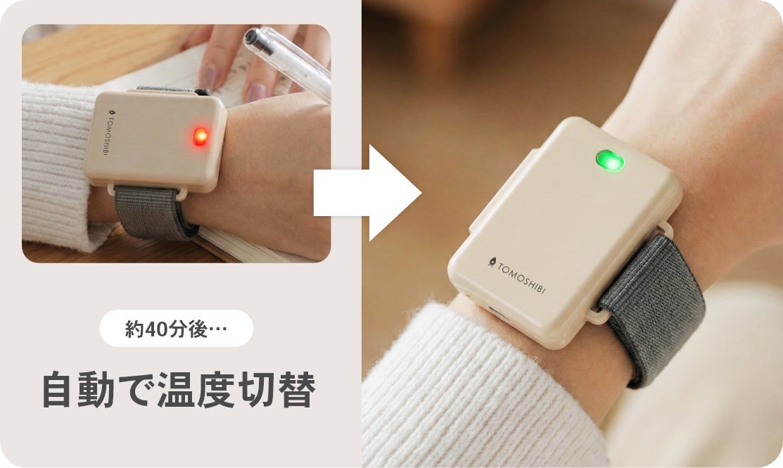 高温モード(42℃)で開始しても、約40分後には自動的に低温モード(38℃)へ切り替わり、快適な温度をキープ。