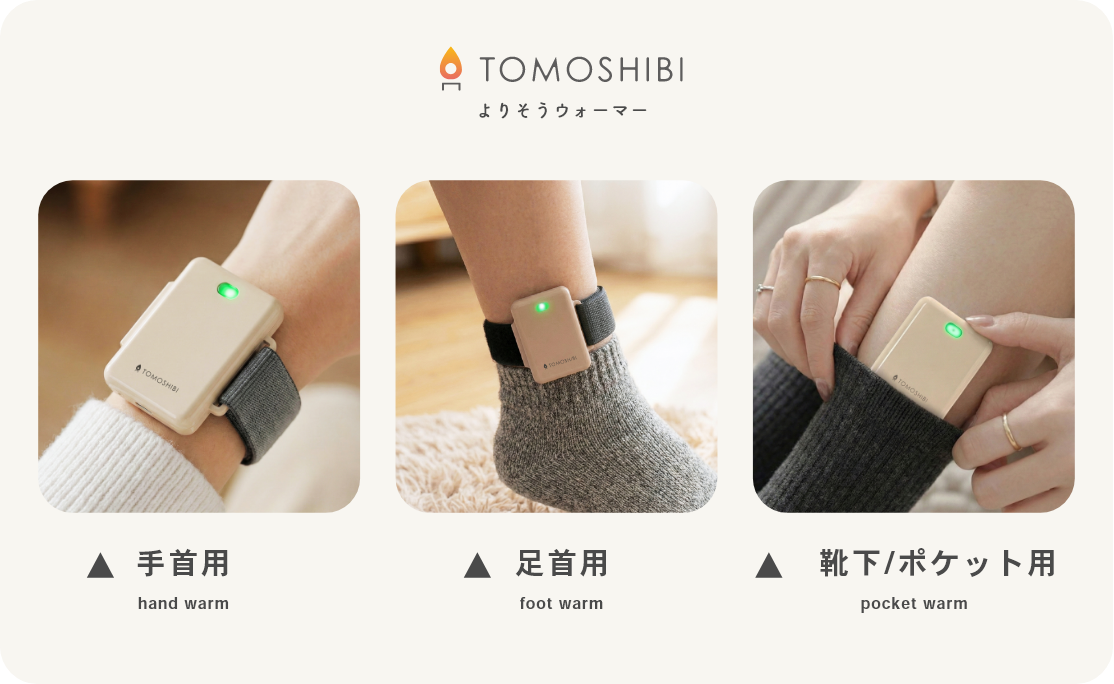 「TOMOSHIBI」はそんな日常のふとした思いから開発した「ウェアラブル電子カイロ」です。