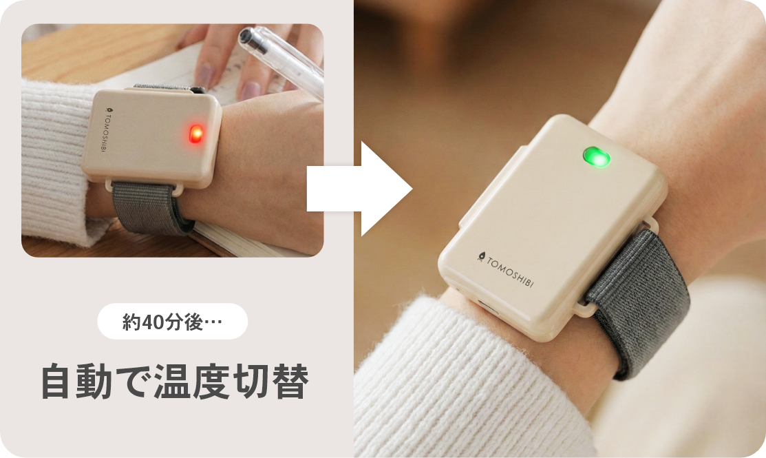 高温モード(42℃)で開始しても、約40分後には自動的に低温モード(38℃)へ切り替わり、快適な温度をキープ。