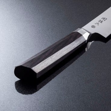 要 切付6寸半(195mm)は、十分な刃渡りと刃幅を備え、日常使いはもちろん、手の込んだ料理においてもその性能を発揮する一本です。刺身やローストビーフなど、崩れやすい食材に対しても、素材を傷めにくく、断面まで美しく仕上げることができます。