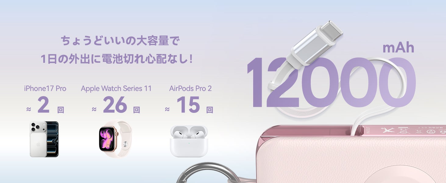 女性に寄り添う充電ブランド RORRY(ロリー) は、外出先でもすぐ使える安心をかなえる、カラビナ付き・巻き取り式USB-Cケーブル内蔵の12000mAh・30W急速充電対応モバイルバッテリー「D3-12000」を、2026年1月30日よりAmazonおよび楽天市場にて発売いたします。