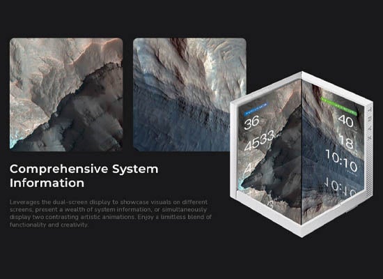 【ラジエーター】 素材:アルミニウム サイズ:360 mm 【ポンプ】 ポンプスピード:800~2600 ±10% RPM 【ファン】 型式:Rota SL ARGB 数:3 寸法:120x120x25 mm ファンスピード:500~1850±10% RPM 【スクリーン】 サイズ:4.0インチ x2 解像度:720×720 x2 |