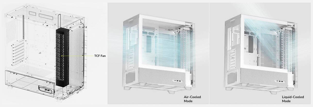 フロントに独自設計のTRYX Cross-Flow(TCF)ファン、リアに120mmファンを搭載。