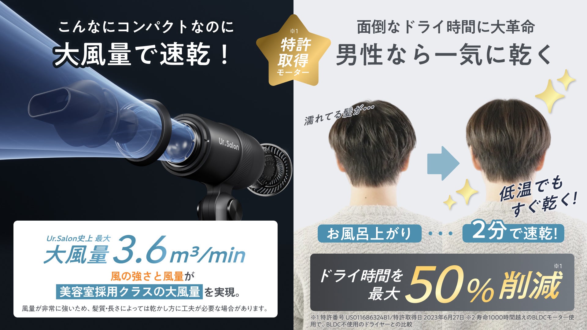 ●【Ur.Salon】“ジェット風量”で最大50%速乾|選べる2種の『ジェットモンスターマイクロドライヤー』新発売