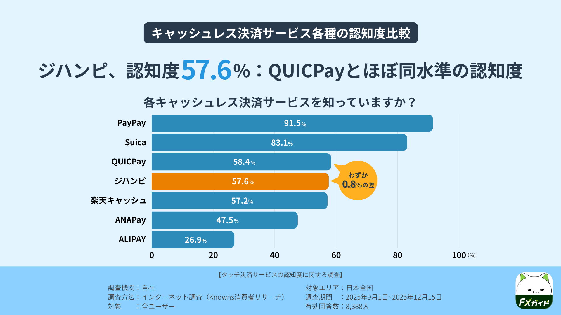 1.ジハンピ認知度57.6%、キャッシュレス決済サービス各種の認知度比較
