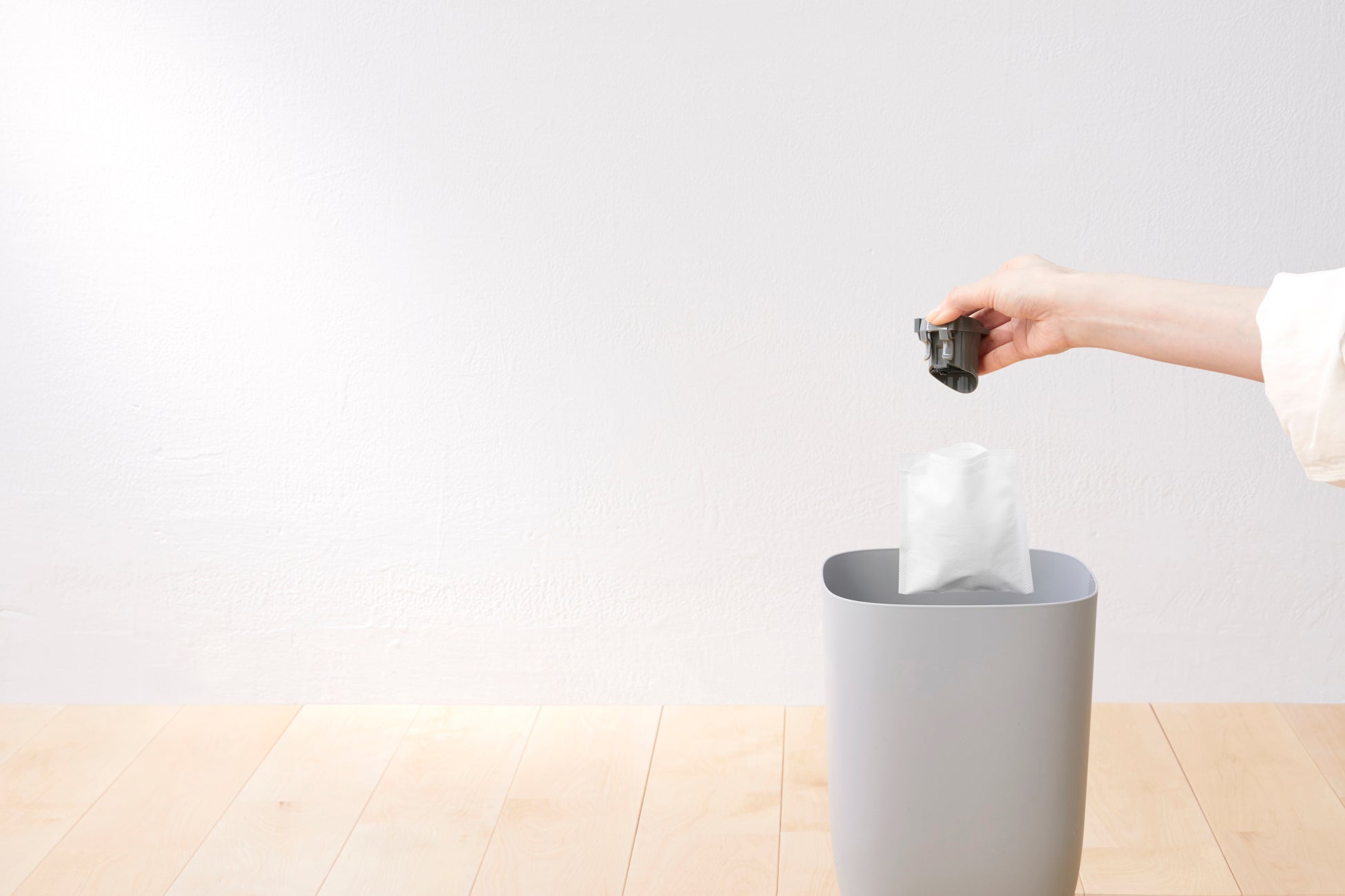 ワンタッチごみ捨てによりごみや花粉が舞いにくい