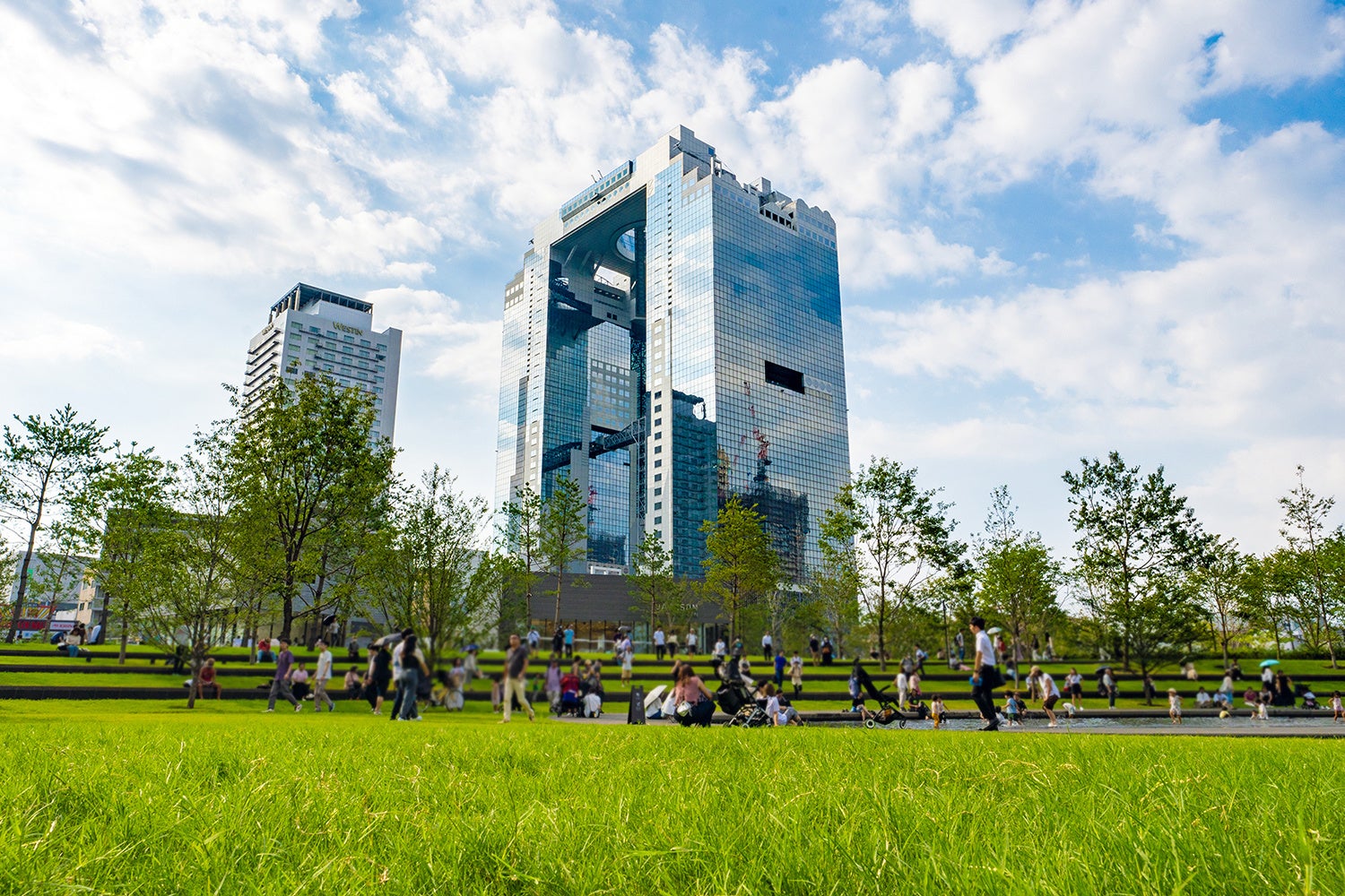 都会と自然が共生し、四季折々の風景に出合えるランドスケープの中にそびえたつ梅田スカイビルは、2008年、サグラダ・ファミリアやパルテノン神殿など歴史的建造物と並び、世界の建築トップ20にランクイン。英紙『THE TIMES』に掲載されたことから海外でも話題に。