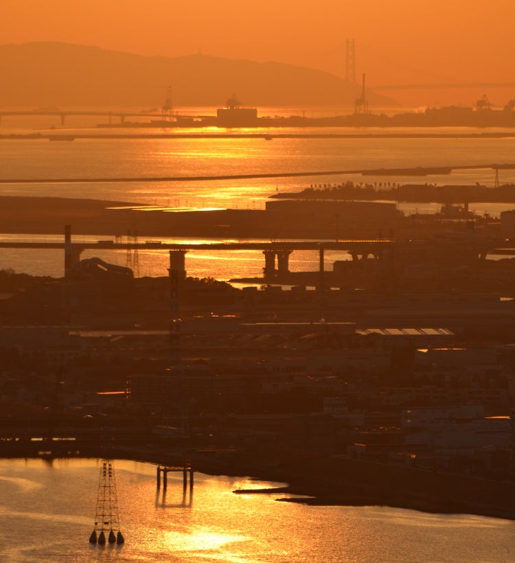 今だけ、わずかな期間。空中庭園展望台で出会う、一期一会の夕景──明石海峡大橋に沈む夕陽