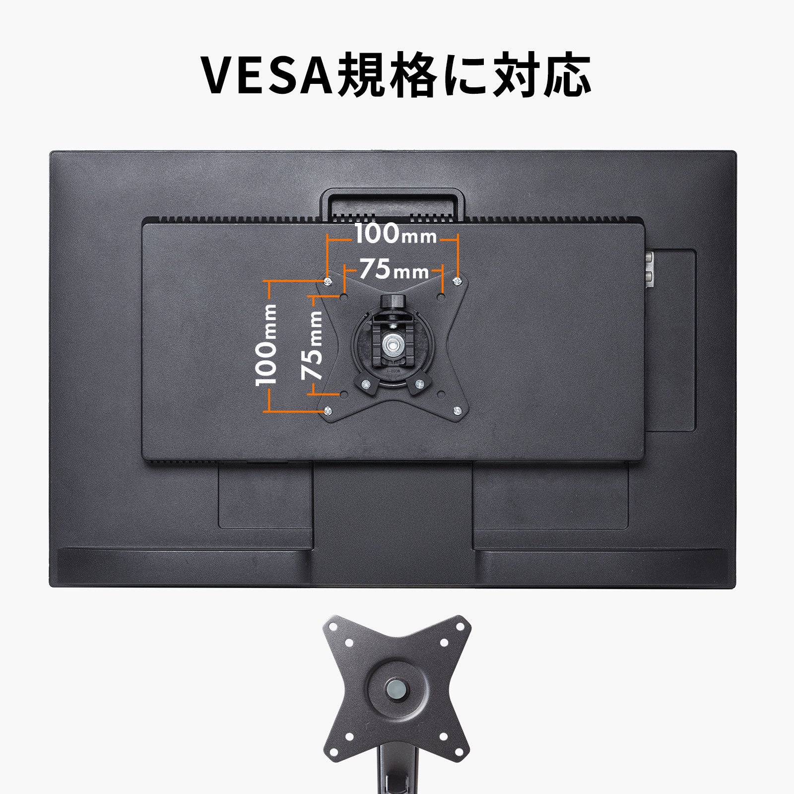 ブラケットは取り外し可能です。VESA75×75、100×100mmに対応しています。
