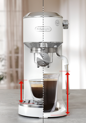 小さなエスプレッソカップから深さのあるカプチーノカップまで対応。カップトレイを大きくし、安定感と使いやすさUP。取り外せるのでお手入れもらくらくです。