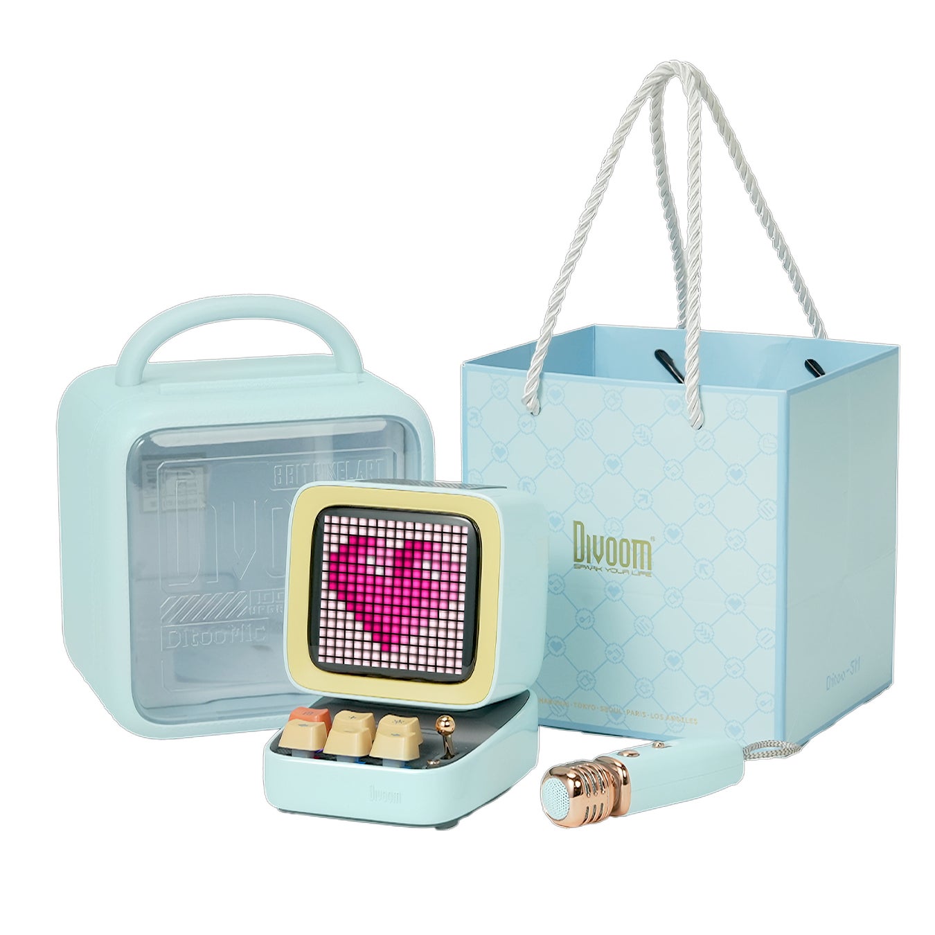 Ditoo‑5Mは、レトロPC風デザインに 15W高出力スピーカー と カラオケ機能 を搭載した新感覚のスピーカー。ピクセルアートの表示、音楽再生、マイクを使ってカラオケまで楽しめる、さまざまな機能を搭載したBluetoothスピーカーです。