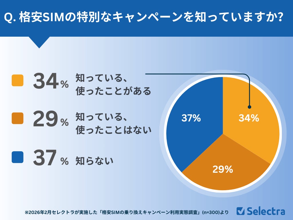 格安SIMの特別なキャンペーンを利用したことがある人は34%