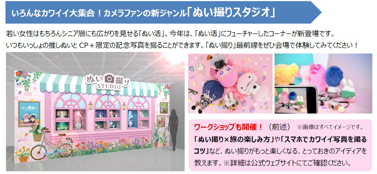 大好評の「プラレール巨大ジオラマ」が、さらにグレードアップして今年も登場!「ぬい活」を体験できるCP+限定の記念写真空間「ぬい撮りスタジオ」もご用意!