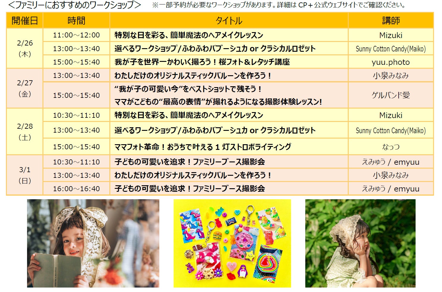 CP+2026注目コンテンツ❸ 女性やファミリー向けに全23本開催!