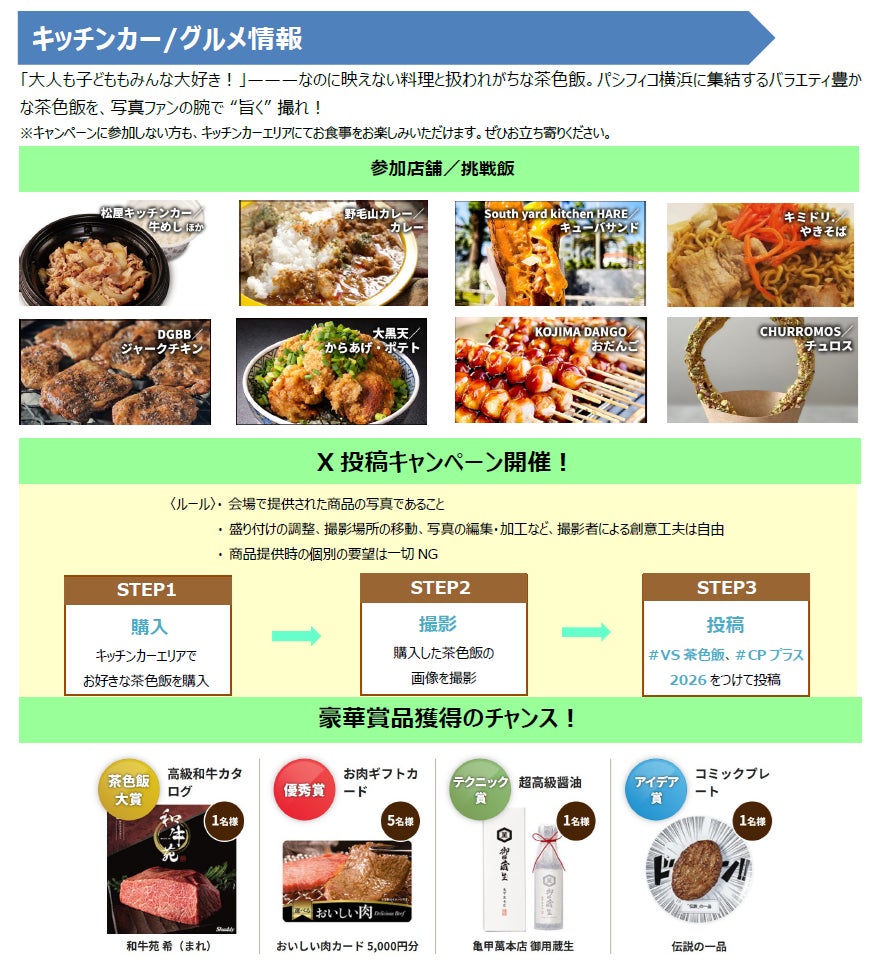 思い出の写真やイラストをその場で缶バッジに︕お子様から大人まで、誰でも楽しめる自由な表現の場として、ぜひ会場でクリエイティブ体験を。今年のキッチンカーは「茶色飯」が勢ぞろいします。X投稿キャンペーンも実施!