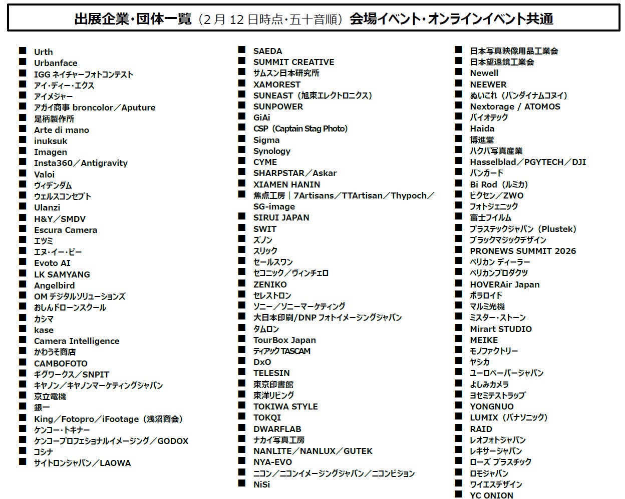 ■主な出展分野:カメラ、レンズ、フォト・ビデオアクセサリー、プリンター、