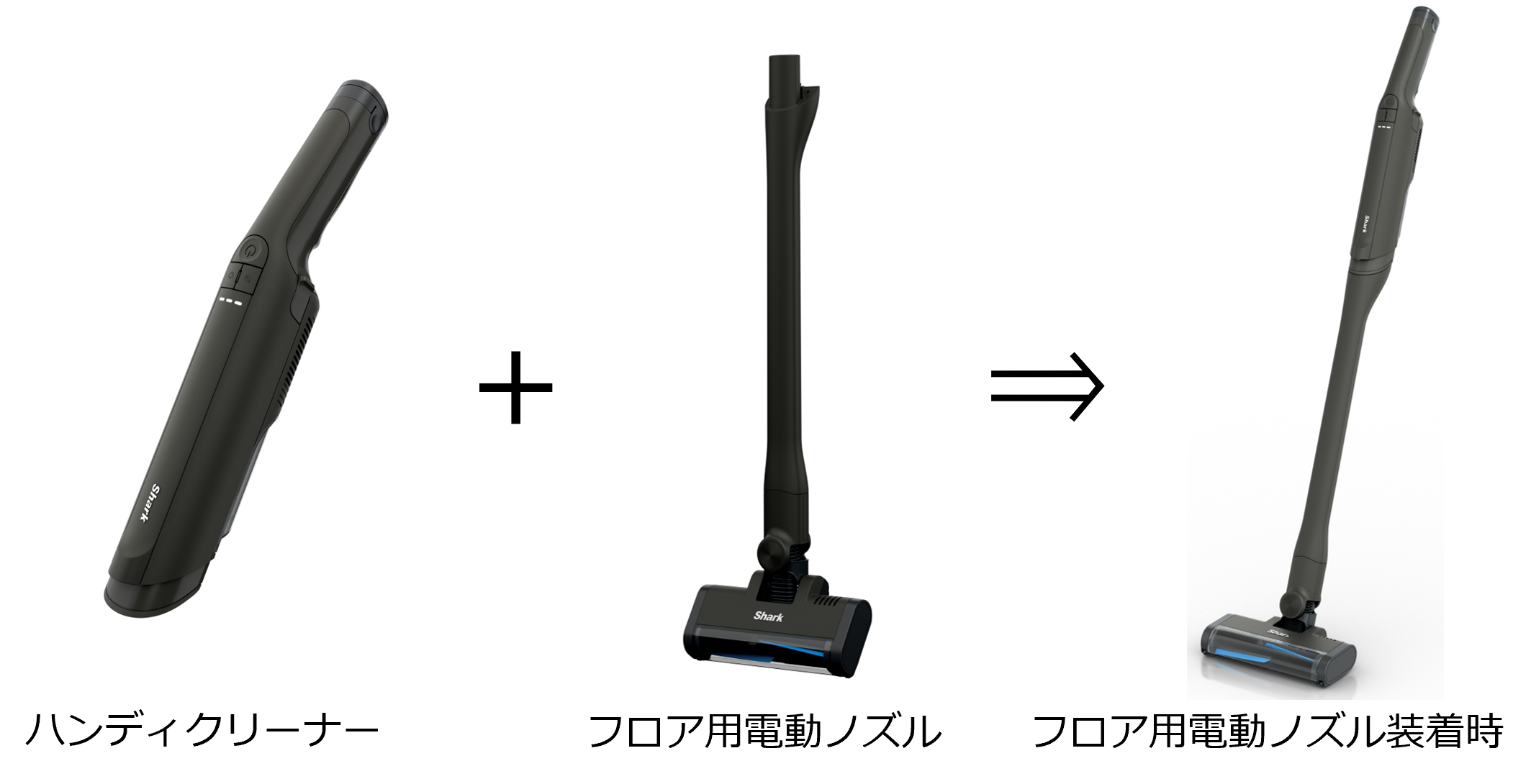 ①「フロア用電動ノズル」付属で”ハイブリッドハンディ”に