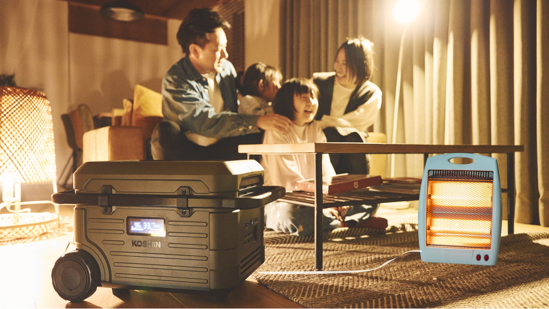 寒い冬に停電になった場合、暖房も使用できず、温かい飲み物も確保することができません。ポータブル電源を使ってヒーターを運転したとしても数時間ほどしか使用できず、途中で止まってしまいます。発電機を使った場合は燃料を継ぎ足せば連続で機器を使用することはできますが、外に置いている発電機に燃料を補充しに行かなければなりません。しかし、ハイブリッド蓄電システムのポータブル電源と発電機を繋げて使用すると、ポータブル電源の電気残量が少なくなると、自動で発電機が動き、ポータブル電源へ充電を始めるので、何も操作の必要がありません。手を汚さず、室内でずっと暖かい状態を保つことができます。