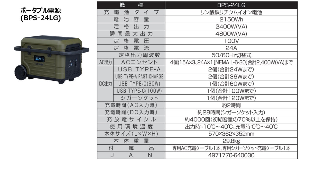 創業1948年以来、ポンプ、発電機、ポータブル電源など開発・販売を展開する株式会社工進(本社:京都府長岡京市、代表取締役社長:小原英一)の商品は防災や災害復旧の現場で必要とされており、中でも特にニーズが高まっているのが停電対策商品です。
