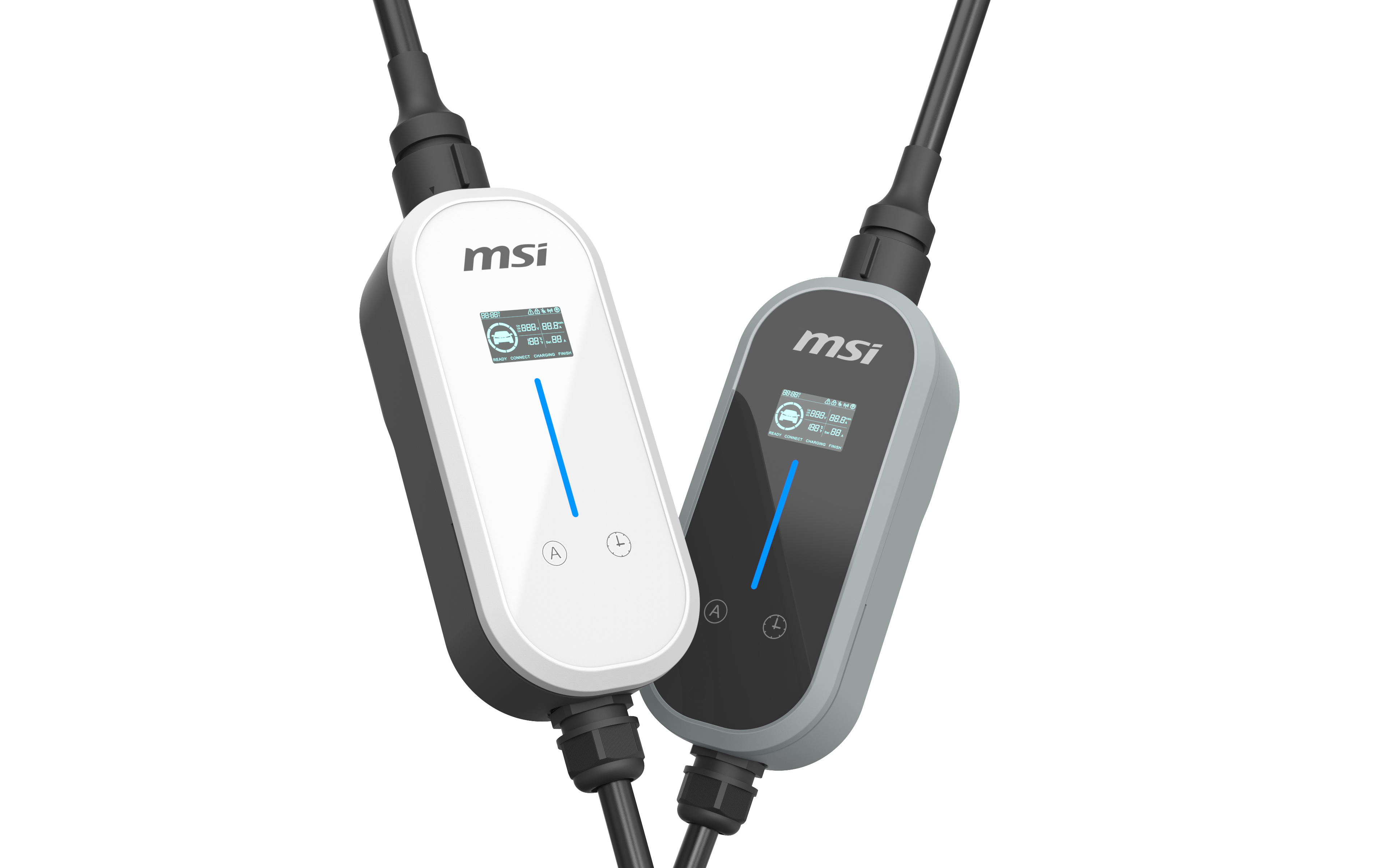 MSI EVシリーズは、多様な電動車(EV)に対応するスタイリッシュなデザインを備え、最大9.6kWの充電性能を実現しています。充電ケーブルはType 1(SAE J1772)規格に対応し、幅広い車種で利用可能です。操作面では、モバイルアプリや7インチディスプレイを搭載し、さらにエネルギー管理システムと連携ができます。QR決済、RFIDカード認証、スケジューリング機能など多彩な方法で、住宅から商業施設まで幅広い利用シーンに適した充電ソリューションを提供します。