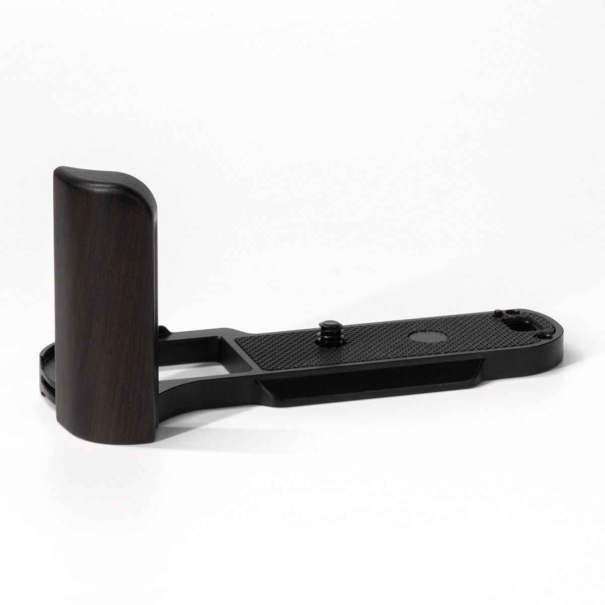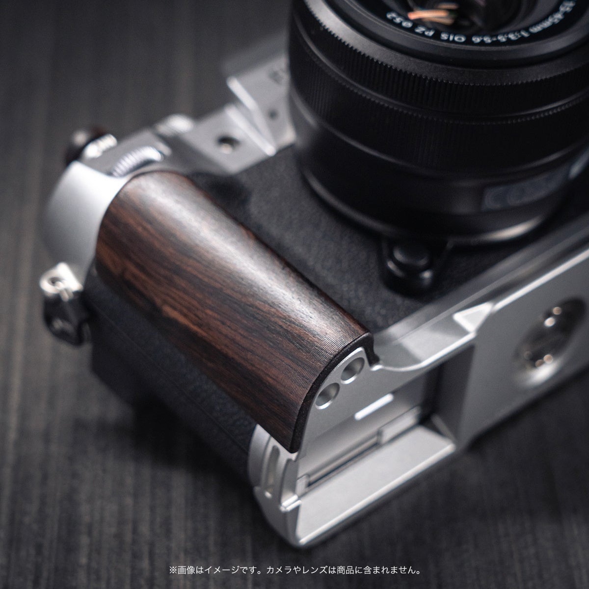 天然木の温もりと金属プレートを融合させたYUWOODならではのデザインは、FUJIFILMが持つクラシックな佇まいと高い親和性を備え、装着することで操作性と質感を自然に引き上げます。カメラ形状に合わせた専用設計により、装着時のフィット感に優れ、カメラ本来の操作性やデザインを損なうことなく、安心してご使用いただけます。装着したままバッテリーおよびメモリーカードの交換が可能で、撮影中の取り回しもスムーズです。底面にはアルカスイス互換規格を採用しており、対応する雲台へ素早く装着でき、快適な撮影環境を実現します。さらに、プレート部にはストラップホールを備え、縦位置・横位置のいずれの撮影スタイルにも柔軟に対応します。グリップ部には天然木を使用し、手に馴染みやすく、長時間の撮影でも快適なホールド感を提供。ホールド性を高めることで手ブレを抑え、安定した撮影をサポートします。使い込むほどに質感や光沢が深まり、天然素材ならではの経年変化をお楽しみいただけます。