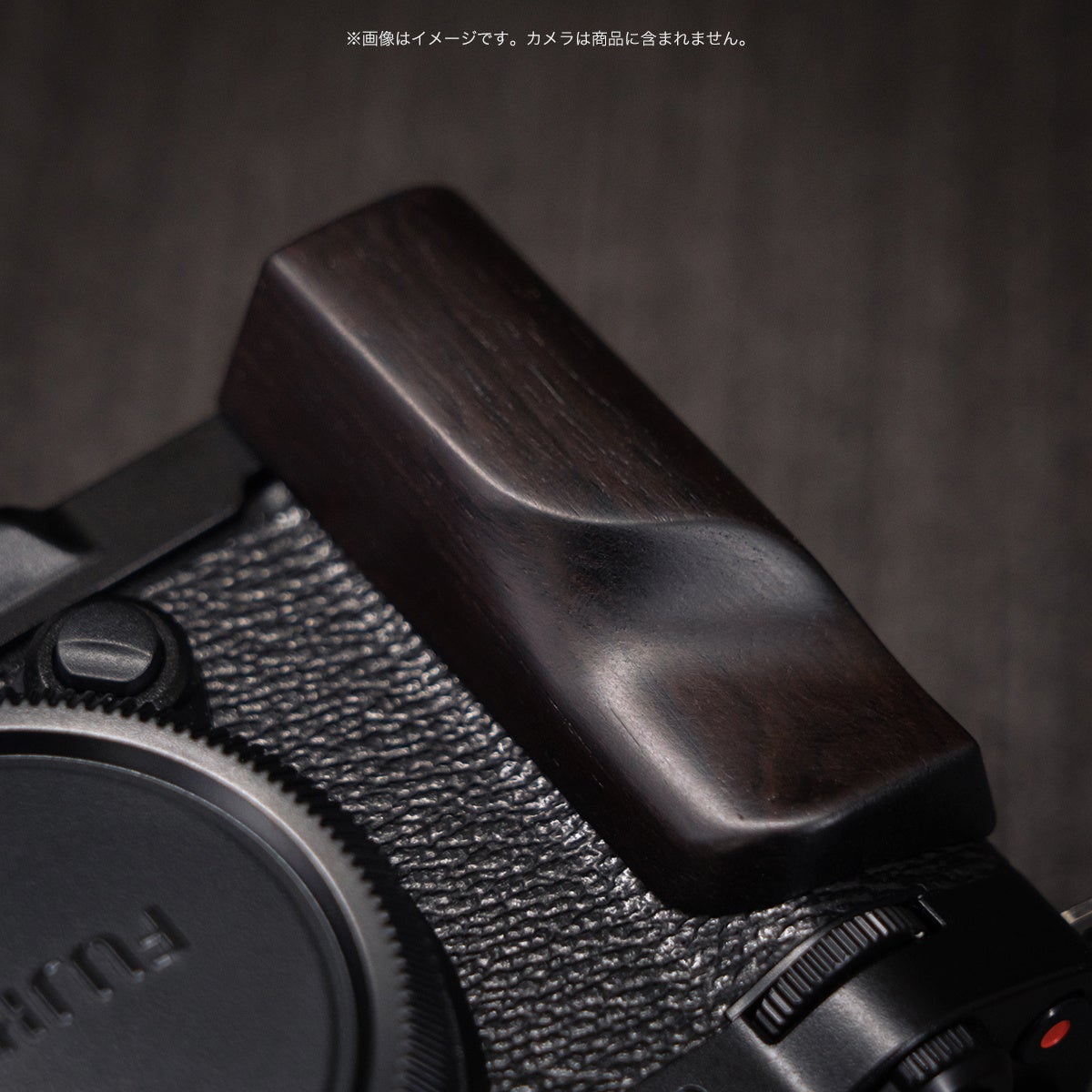 カメラ本体のデザインを損なうことなく調和する、シンプルかつ上品な外観を備えたサムレストです。