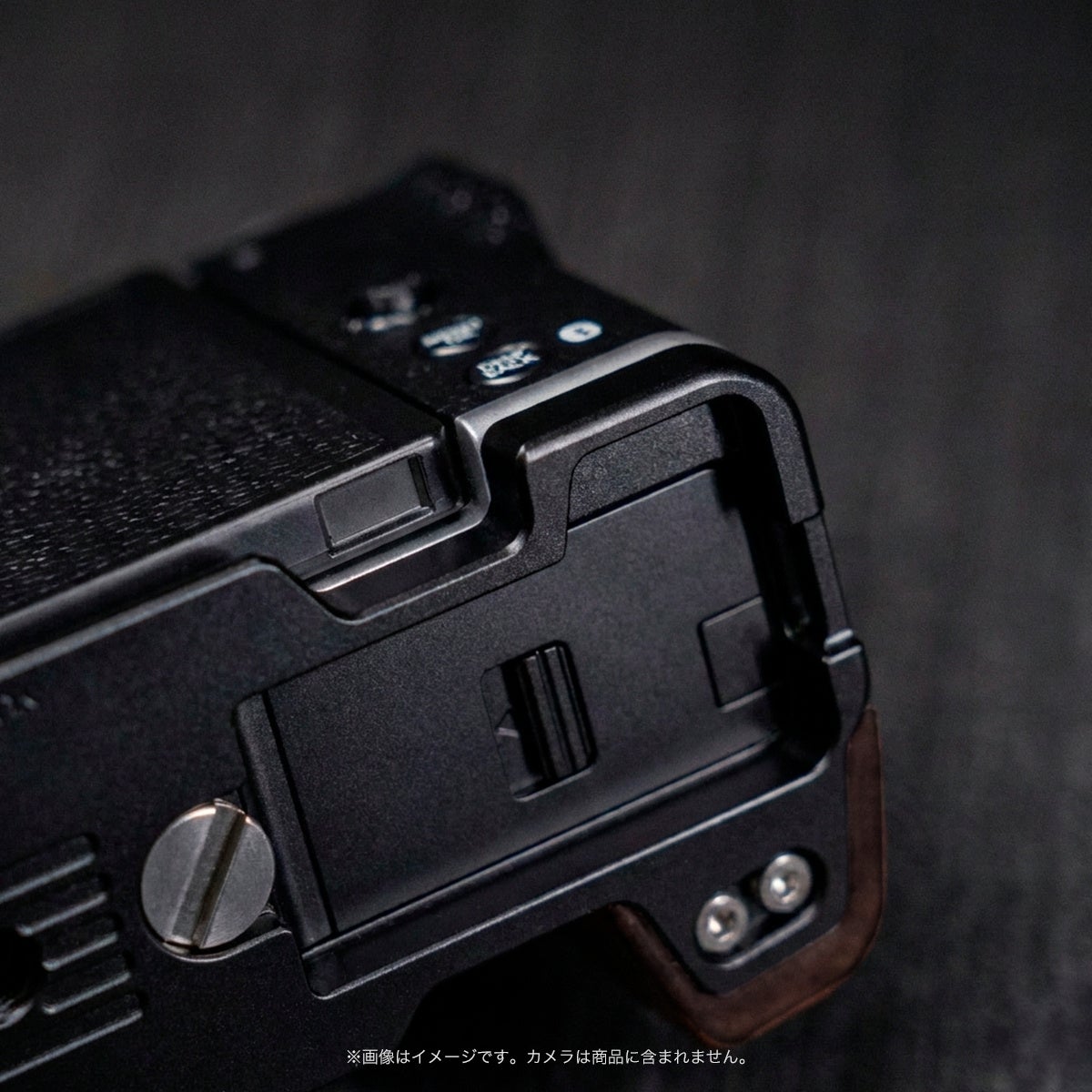 天然木の温もりと金属プレートを融合させたYUWOODならではのデザインは、FUJIFILMが持つクラシックな佇まいと高い親和性を備え、装着することで操作性と質感を自然に引き上げます。カメラ形状に合わせた専用設計により、装着時のフィット感に優れ、カメラ本来の操作性やデザインを損なうことなく、安心してご使用いただけます。装着したままバッテリーおよびメモリーカードの交換が可能で、撮影中の取り回しもスムーズです。底面にはアルカスイス互換規格を採用しており、対応する雲台へ素早く装着でき、快適な撮影環境を実現します。さらに、プレート部にはストラップホールを備え、縦位置・横位置のいずれの撮影スタイルにも柔軟に対応します。グリップ部には天然木を使用し、手に馴染みやすく、長時間の撮影でも快適なホールド感を提供。ホールド性を高めることで手ブレを抑え、安定した撮影をサポートします。使い込むほどに質感や光沢が深まり、天然素材ならではの経年変化をお楽しみいただけます。
