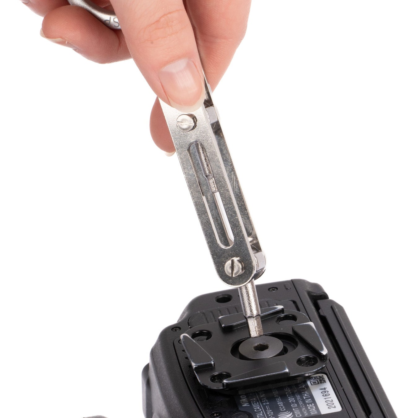 第一弾として発売するのは、「カメラ工具」です。六角レンチ2サイズとマイナスドライバーを一つに収納した、キーホルダー感覚で携帯できる小型のマルチツールです。カメラ周りの機材調整でよく使う3つの工具をコンパクトにまとめ、持ち運びやすさと実用性を両立させました。特徴的なフォルムを持つメイン部品は、燕三条の技術で製造。長年培われた金属加工の精度と、使い手への配慮が随所に活きています。