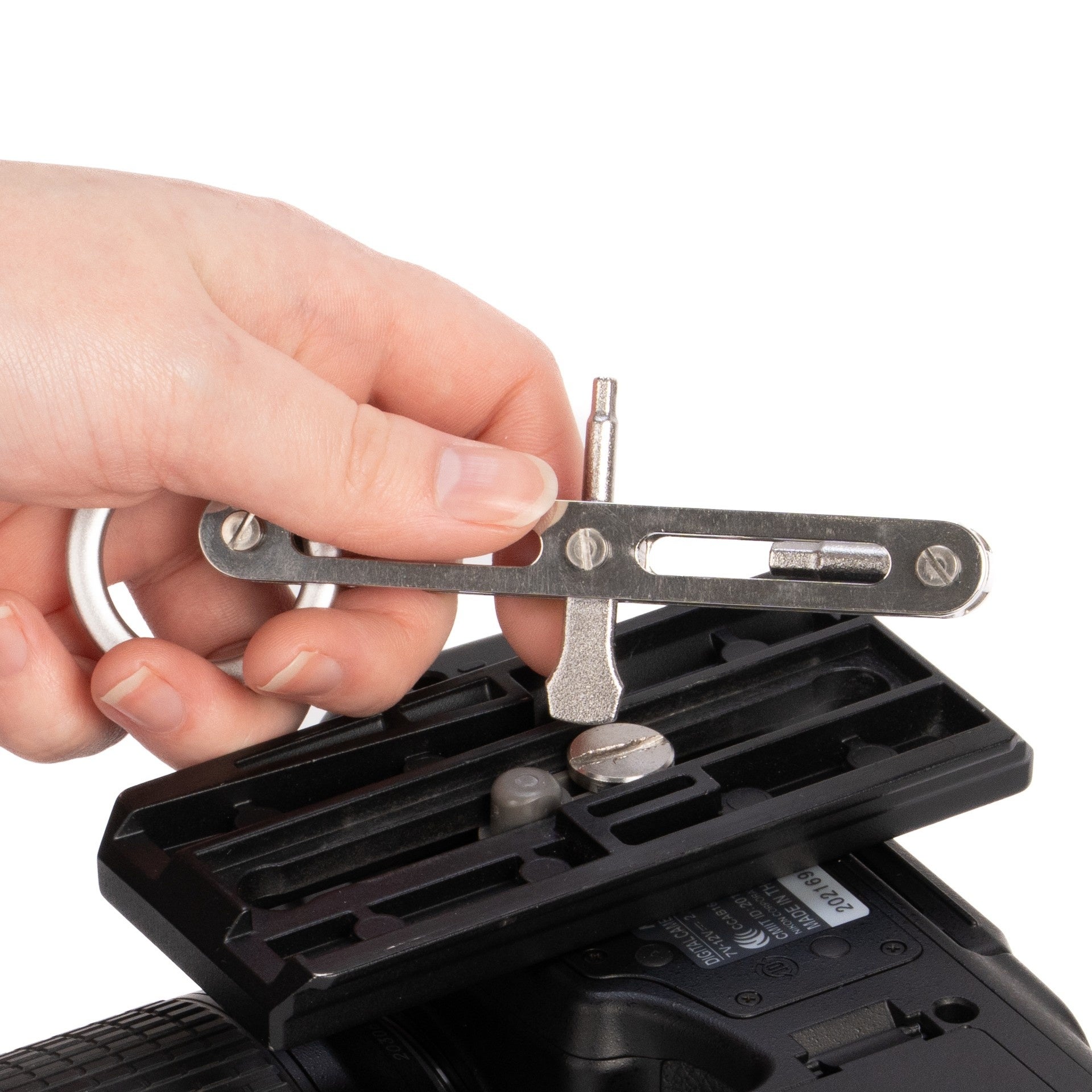 第一弾として発売するのは、「カメラ工具」です。六角レンチ2サイズとマイナスドライバーを一つに収納した、キーホルダー感覚で携帯できる小型のマルチツールです。カメラ周りの機材調整でよく使う3つの工具をコンパクトにまとめ、持ち運びやすさと実用性を両立させました。特徴的なフォルムを持つメイン部品は、燕三条の技術で製造。長年培われた金属加工の精度と、使い手への配慮が随所に活きています。