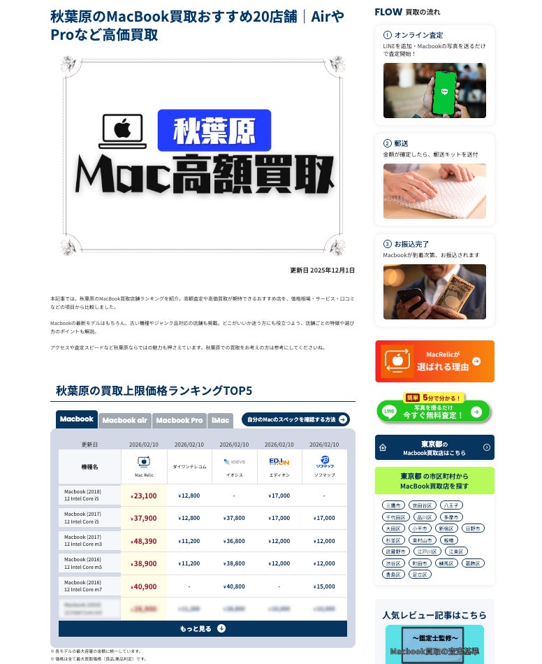 地域ごとのMacBook買取比較記事も拡充