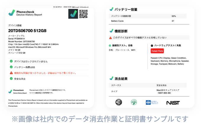 安心のデータ消去・救出: 古いMacBookを出す際の最大の不安「データ流出」や「写真救出」についても、専用チャットで査定師に直接相談が可能。手続き前の不安を解消します。
